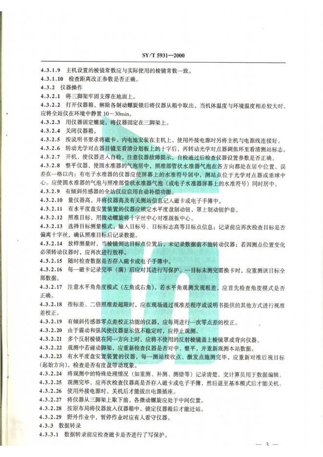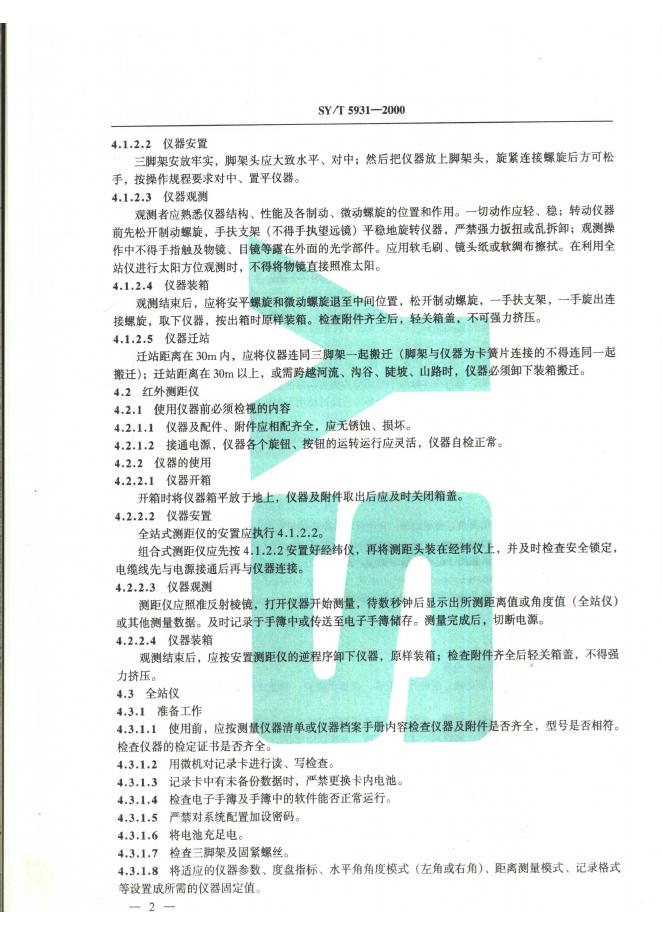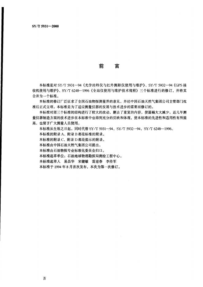 SY/T 5931-1994 光学经纬仪与红外测距仪使用与维护