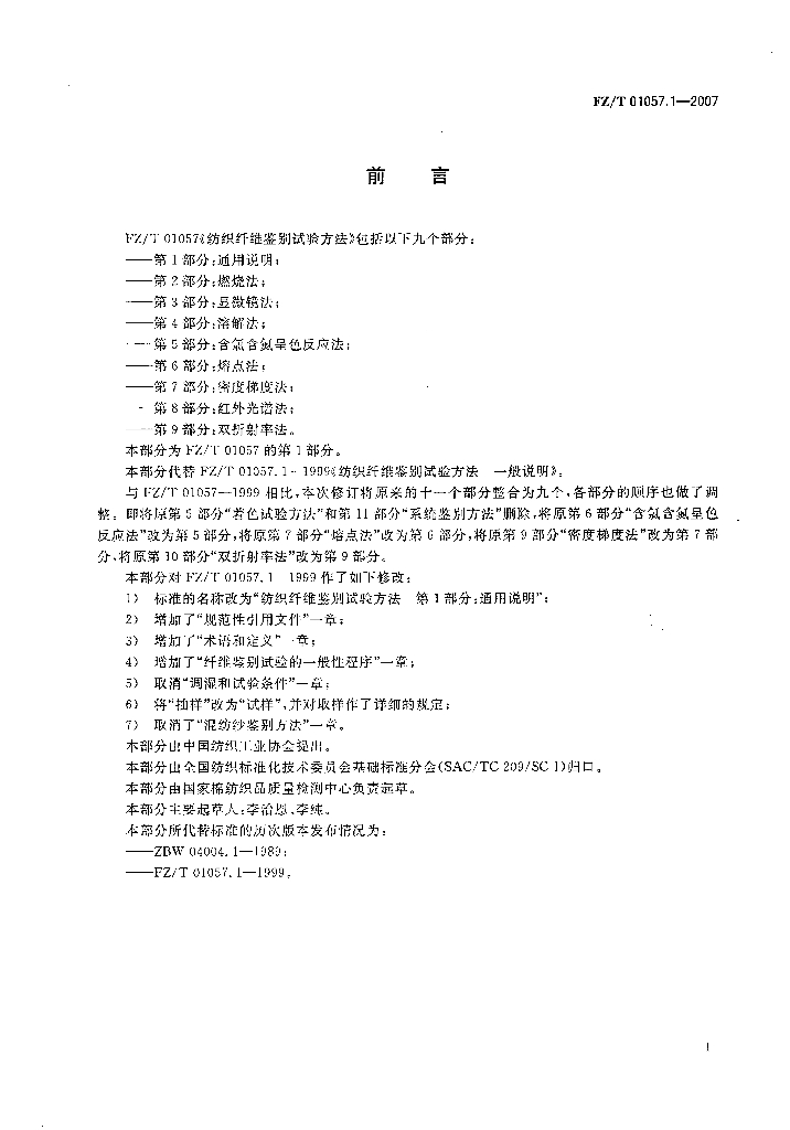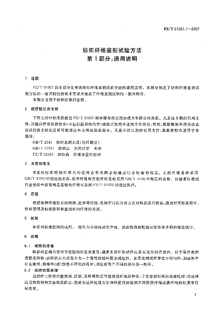 FZ/T 01057.1-2007 纺织纤维鉴别试验方法 第1部分通用说明