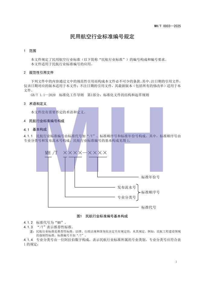 MH/T 0003-2025 民用航空行业标准编号规定