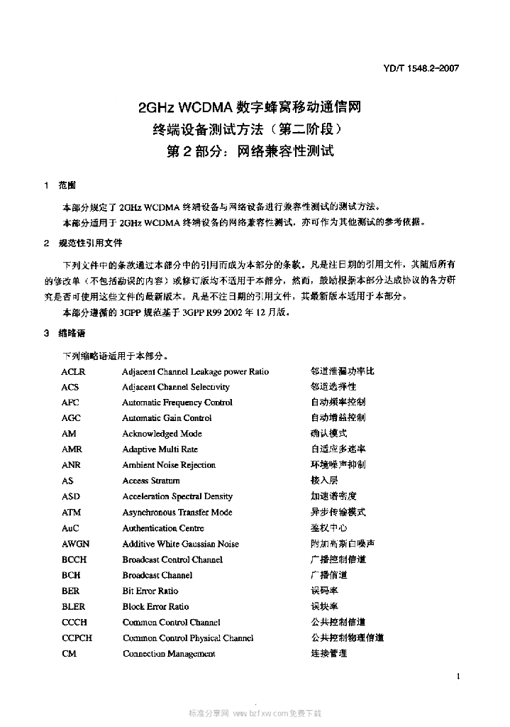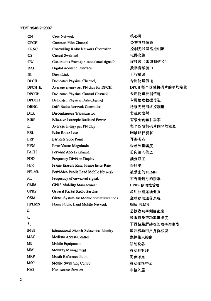 YD/T 1548.2-2007 2GHz WCDMA 数字蜂窝移动通信网终端设备测试方法(第二阶段) 第2部分:网络兼容性测试