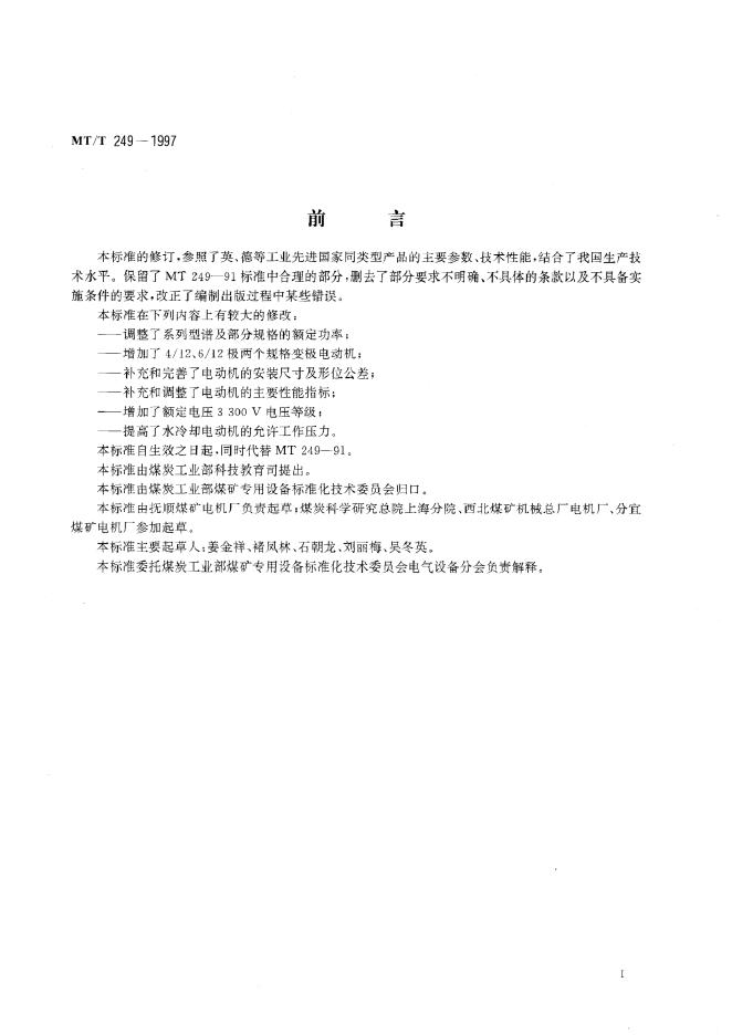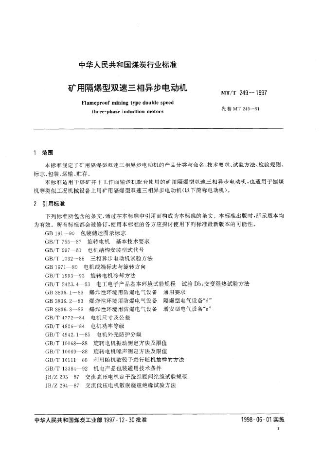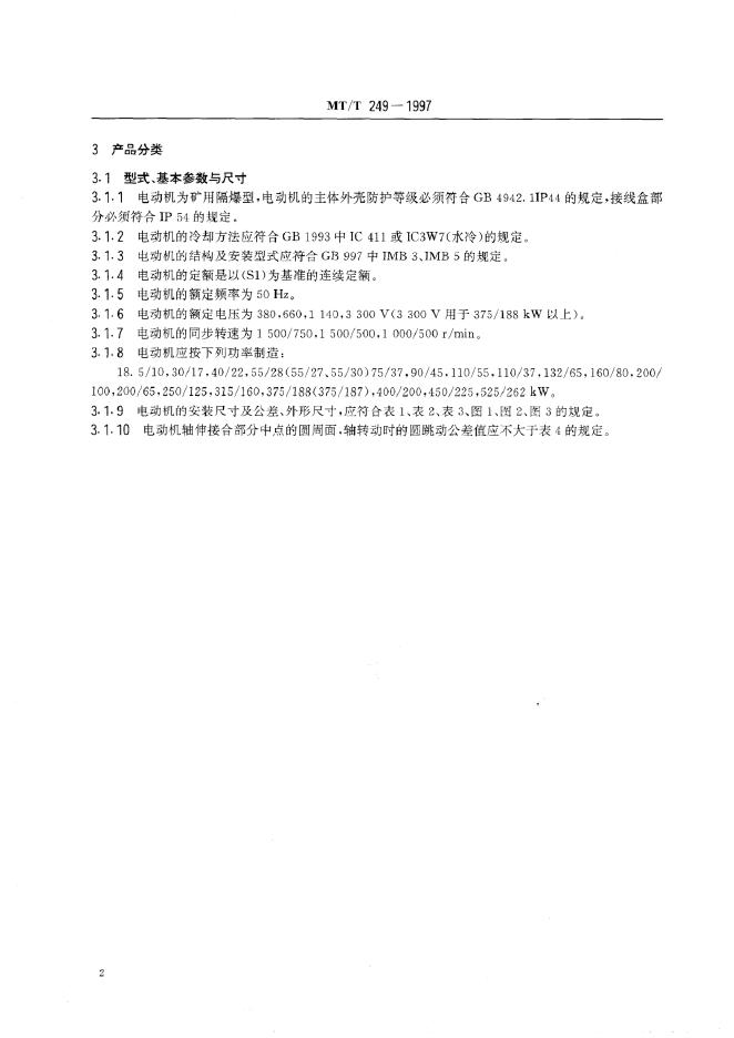 MT/T 249-1991 矿用隔爆型双速三相异步电动机