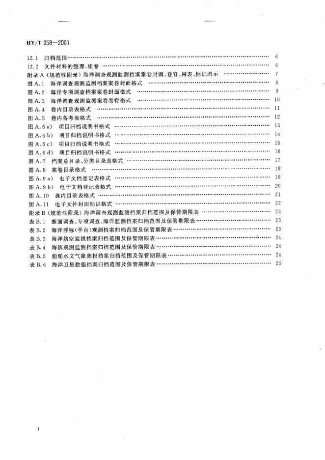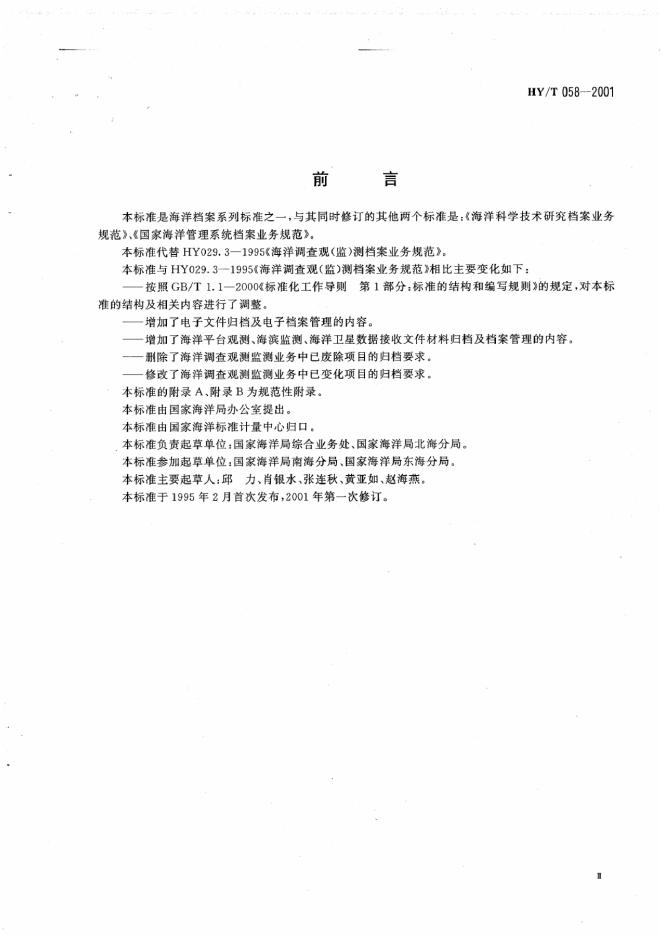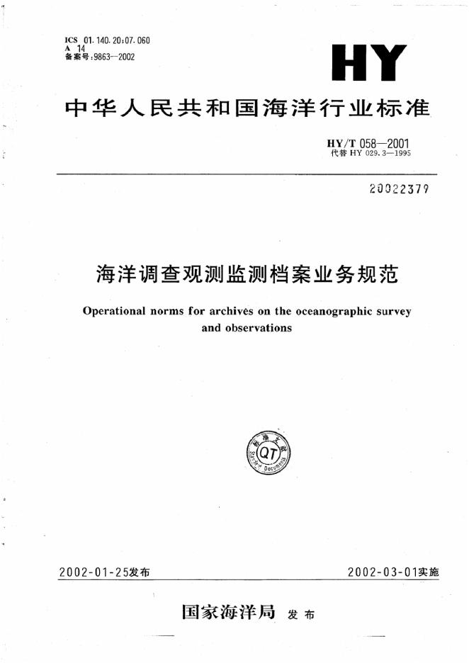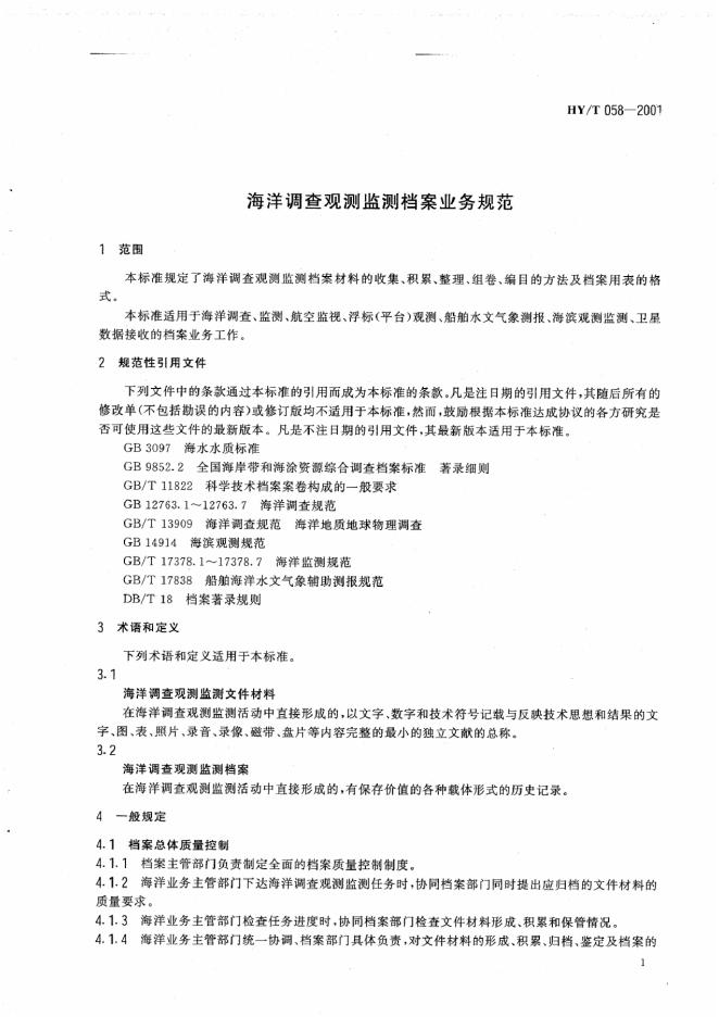 HY/T 058-2001 海洋调查观测监测档案业务规范