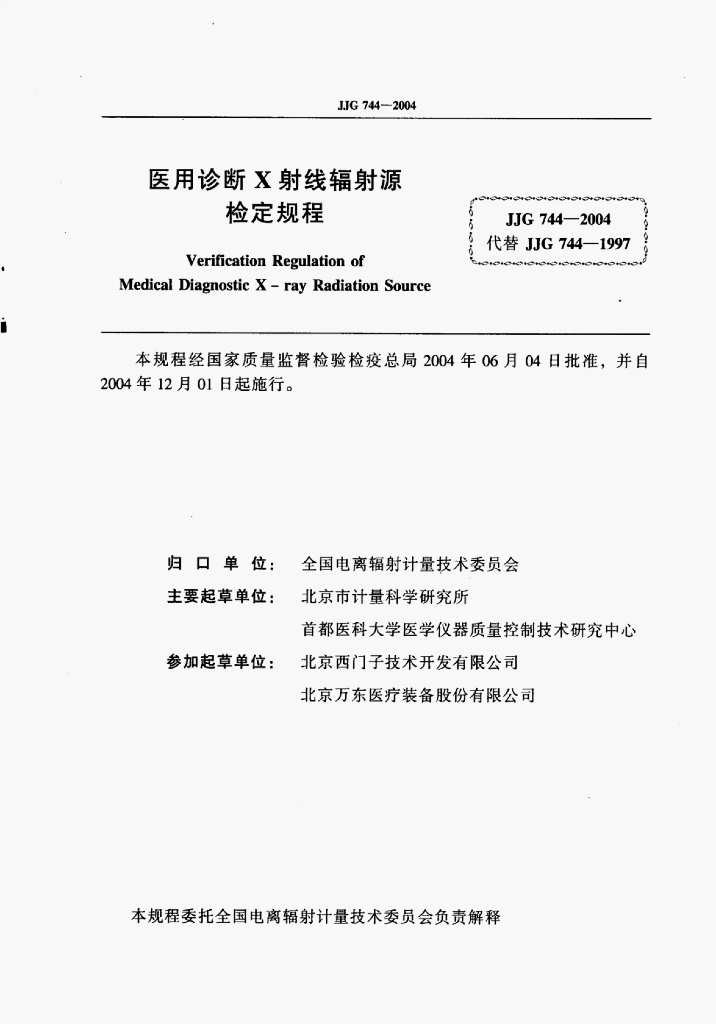 北京市计量科学研究所、首都医科大学医学仪器质量控制技术研究中心、北京西门子技术开发有限公司、北京万东医疗装备股份有限公司