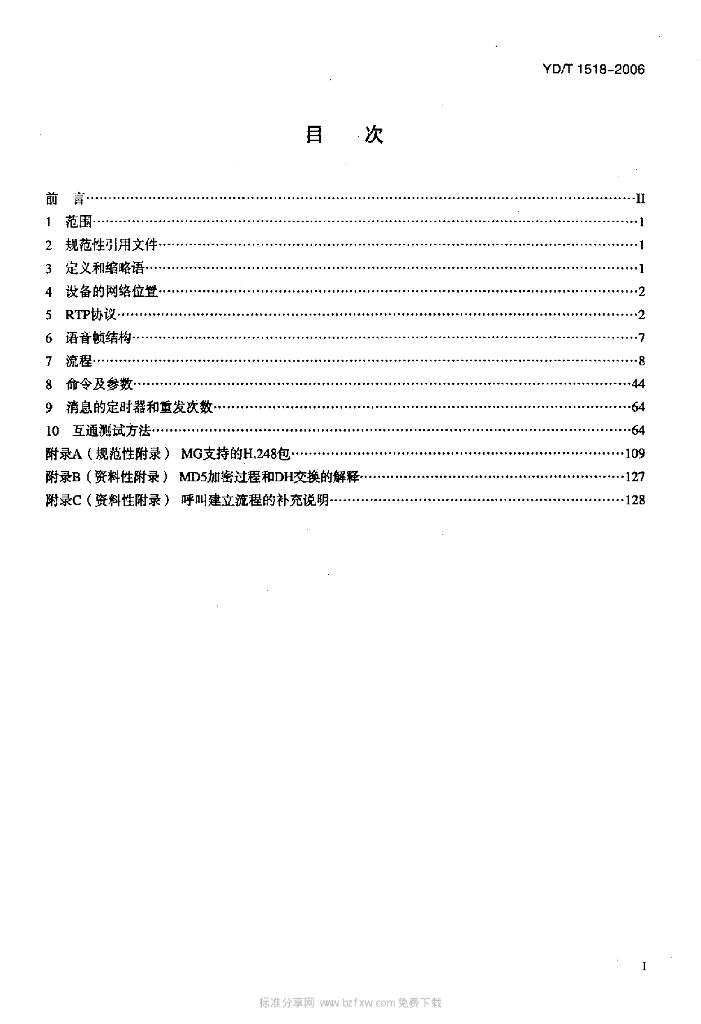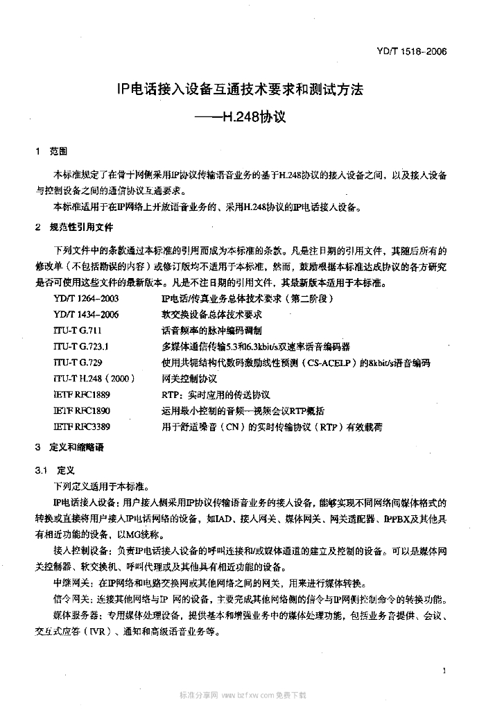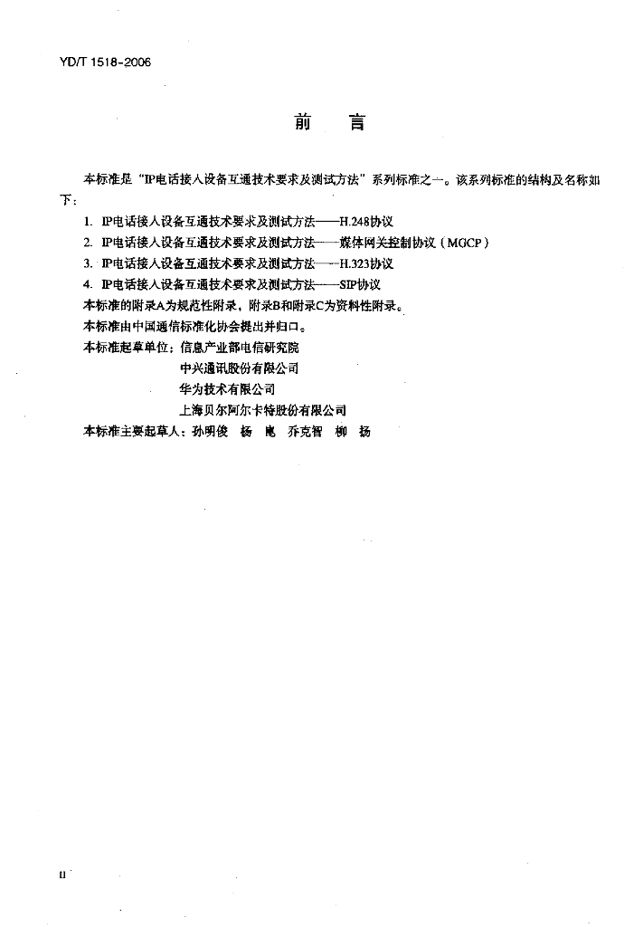 YD/T 1518-2006 IP 电话接入设备互通技术要求和测试方法——H.248 协议