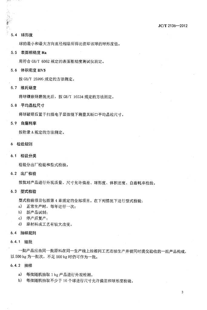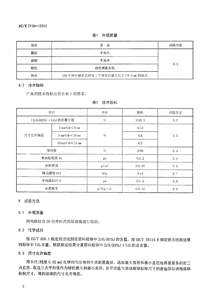 JC/T 2136-2012 微晶氧化锆研磨介质球