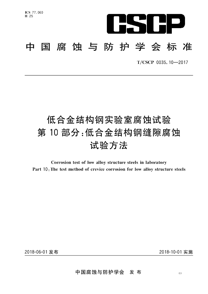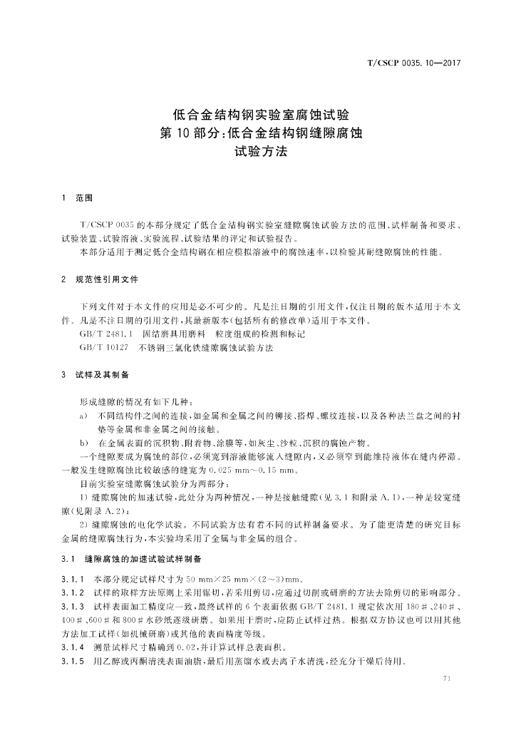 T/CSCP 0035.10-2017 低合金结构钢实验室腐蚀试验 第10部分:低合金结构钢缝隙腐蚀试验方法