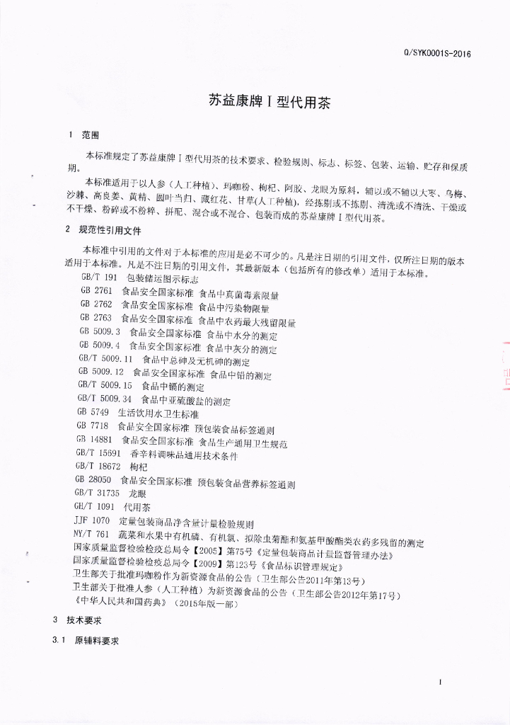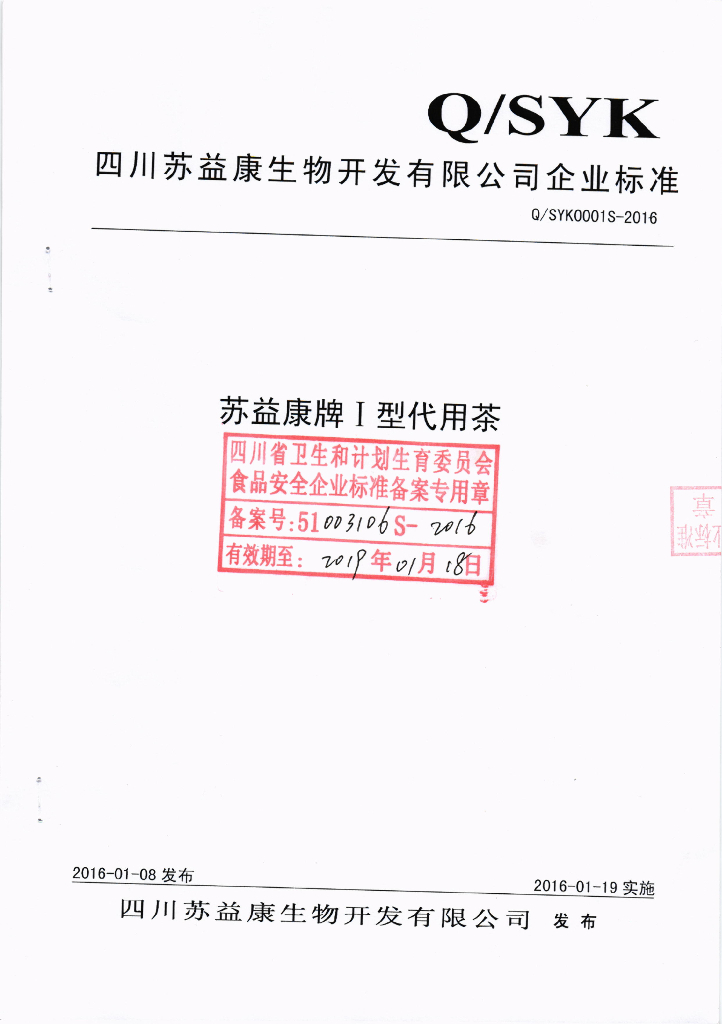 Q/SYK 0001S-2016 四川苏益康生物开发有限公司 苏益康牌Ⅰ 型代用茶