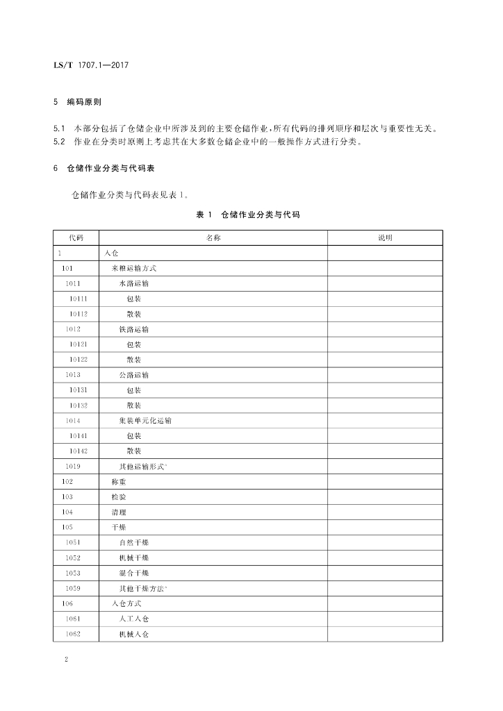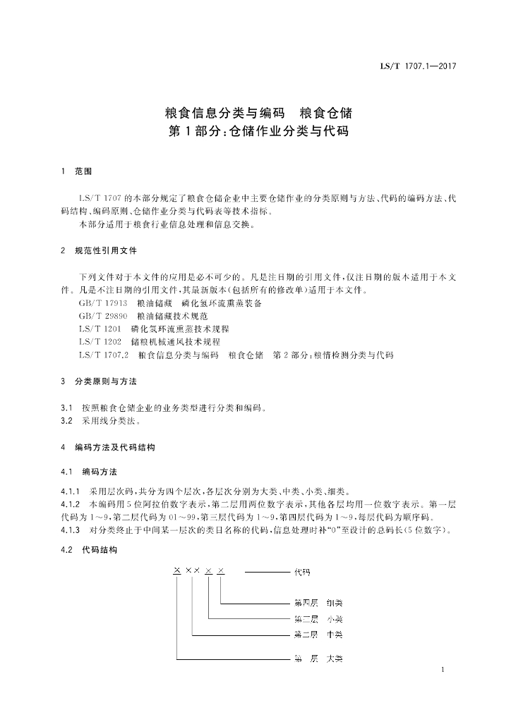 LS/T 1707.1-2017 粮食信息分类与编码 粮食仓储 第1部分:仓储作业分类与代码