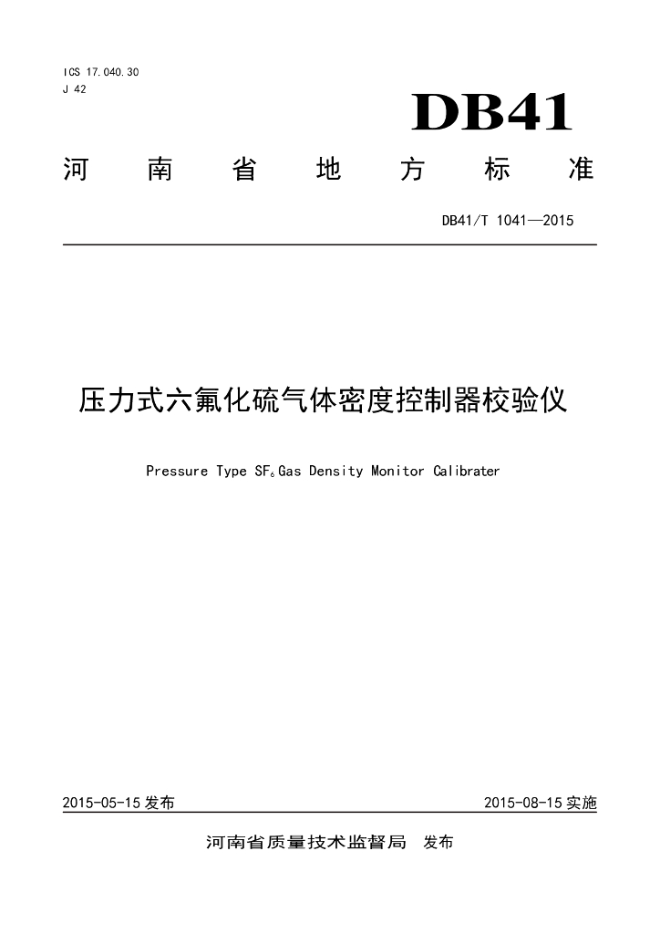 DB41/T 1041-2015 压力式六氟化硫气体密度控制器校验仪