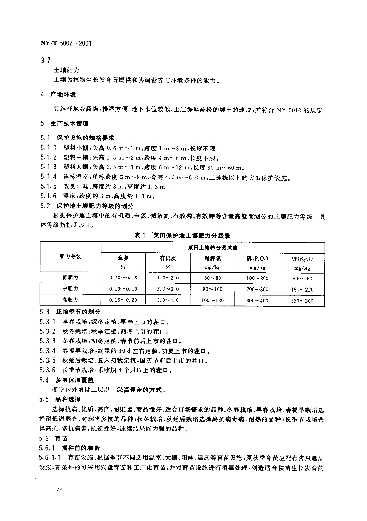NY/T 5007-2001 无公害食品 番茄保护地生产技术规程