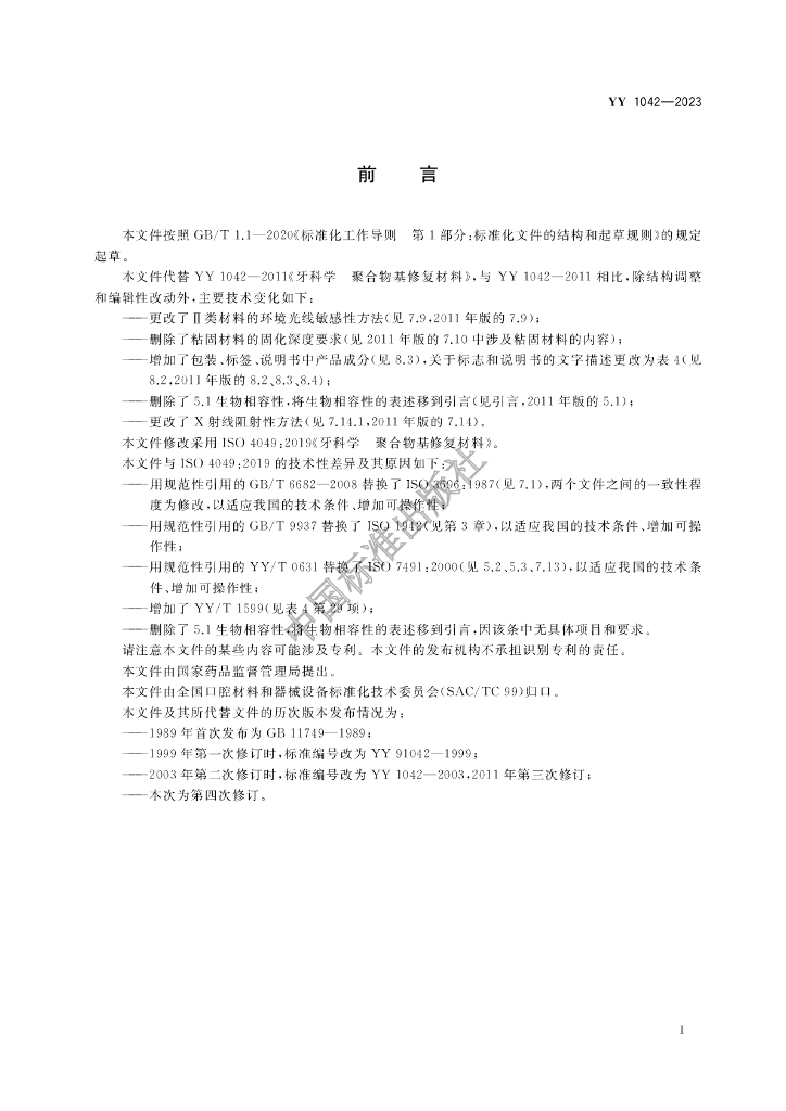 YY 1042-2023 牙科学 聚合物基修复材料