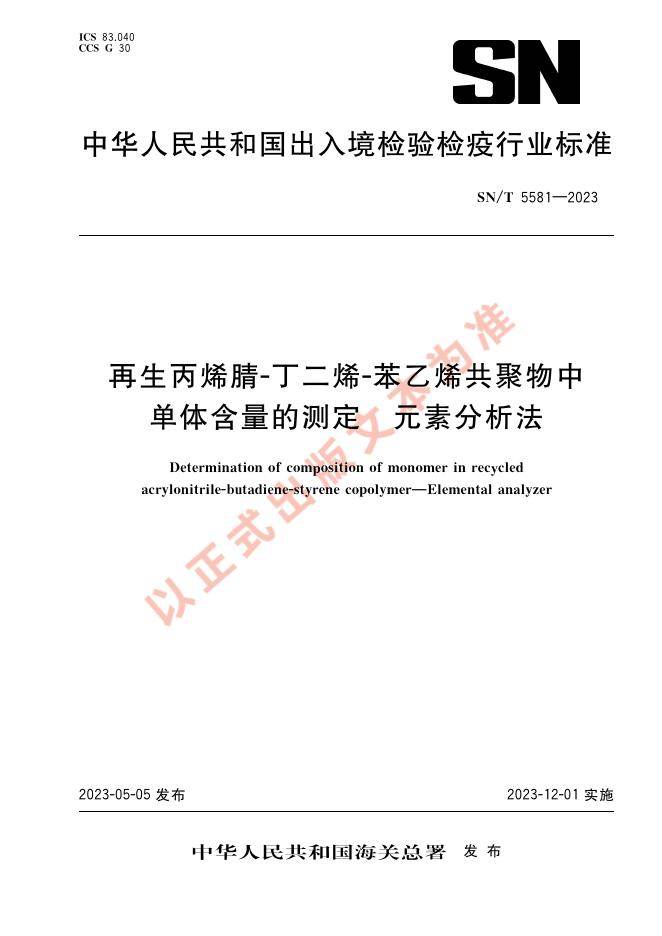 SN/T 5581-2023 再生丙烯腈-丁二烯-苯乙烯共聚物中单体含量的测定 元素分析法