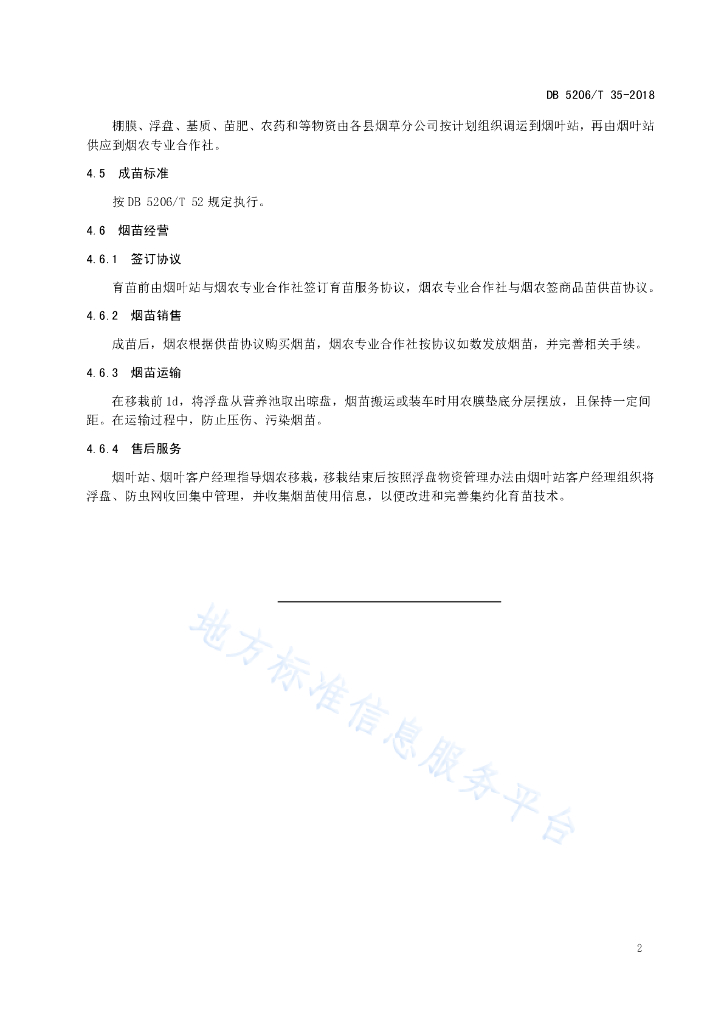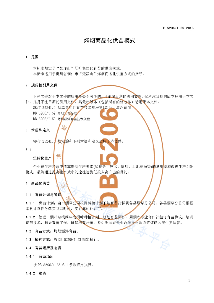 DB5206/T 35-2018 烤烟商品化供苗模式