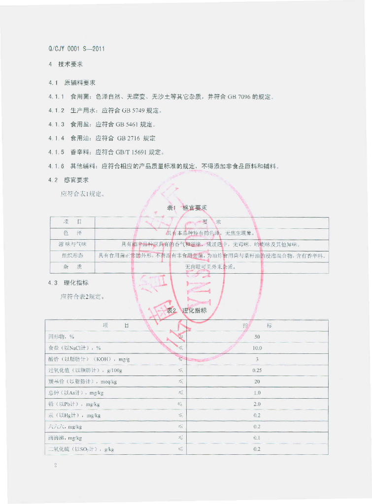 Q/CJY 0001S-2011 油炸食用菌