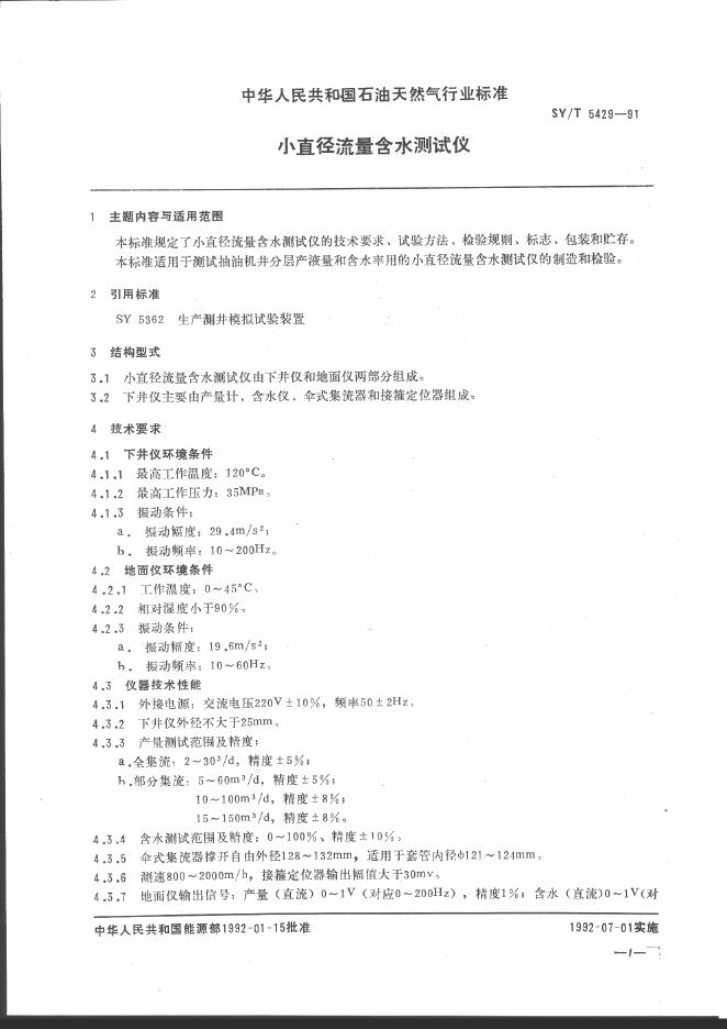 SY/T 5429-1991 小直径流量含水测试仪