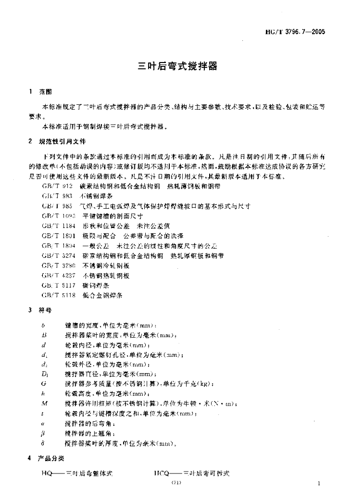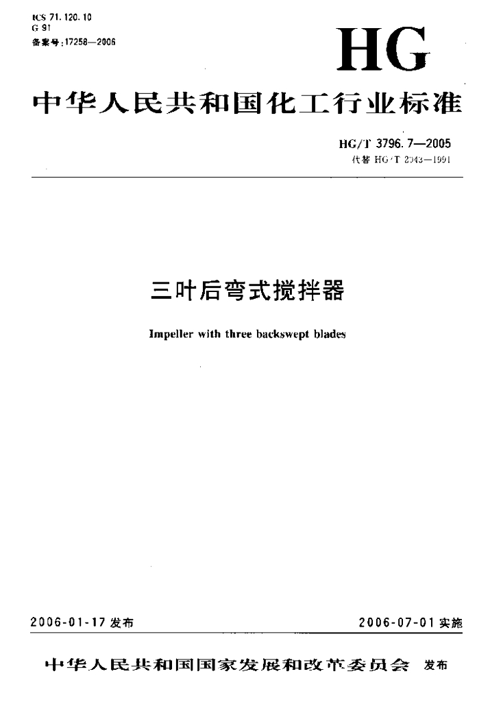 HG/T 3796.7-2005 三叶后弯式搅拌器