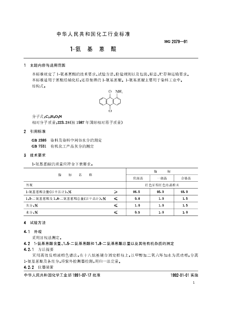HG 2079-1991 1-氨基蒽醌