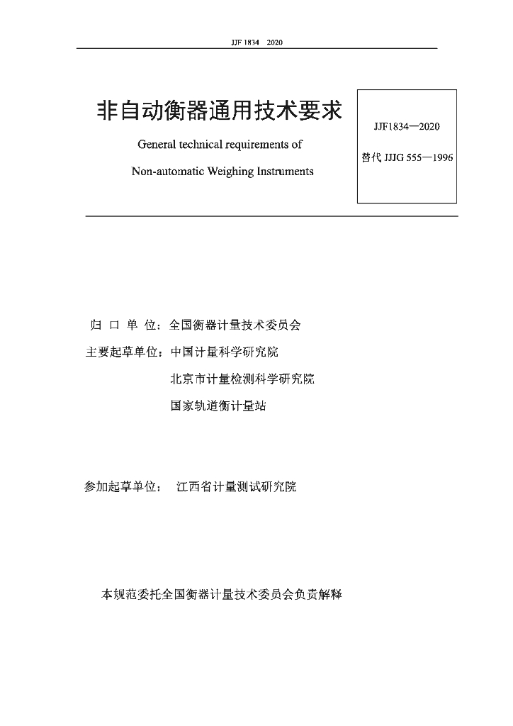 中国计量科学研究院、北京市计量检测科学研究院、国家轨道衡计量站、江西省计量测试研究院