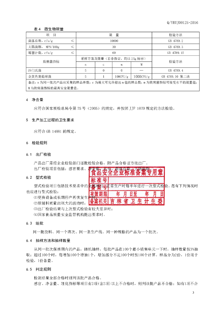 Q/YBTJ 0012S-2016 延边檀君药业有限公司 模压红参