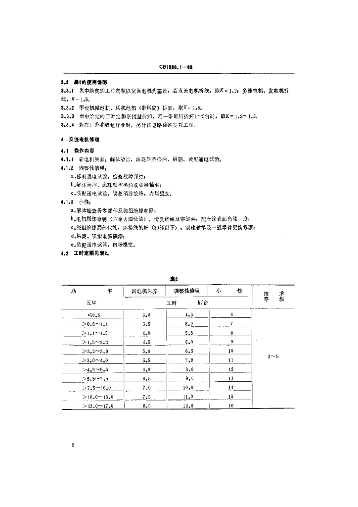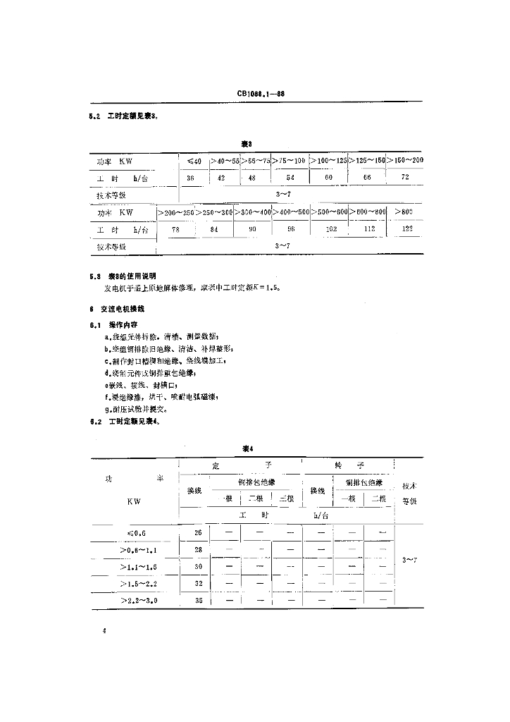 CB 1088.1-1988 船舶电气设备修理工时定额 电机