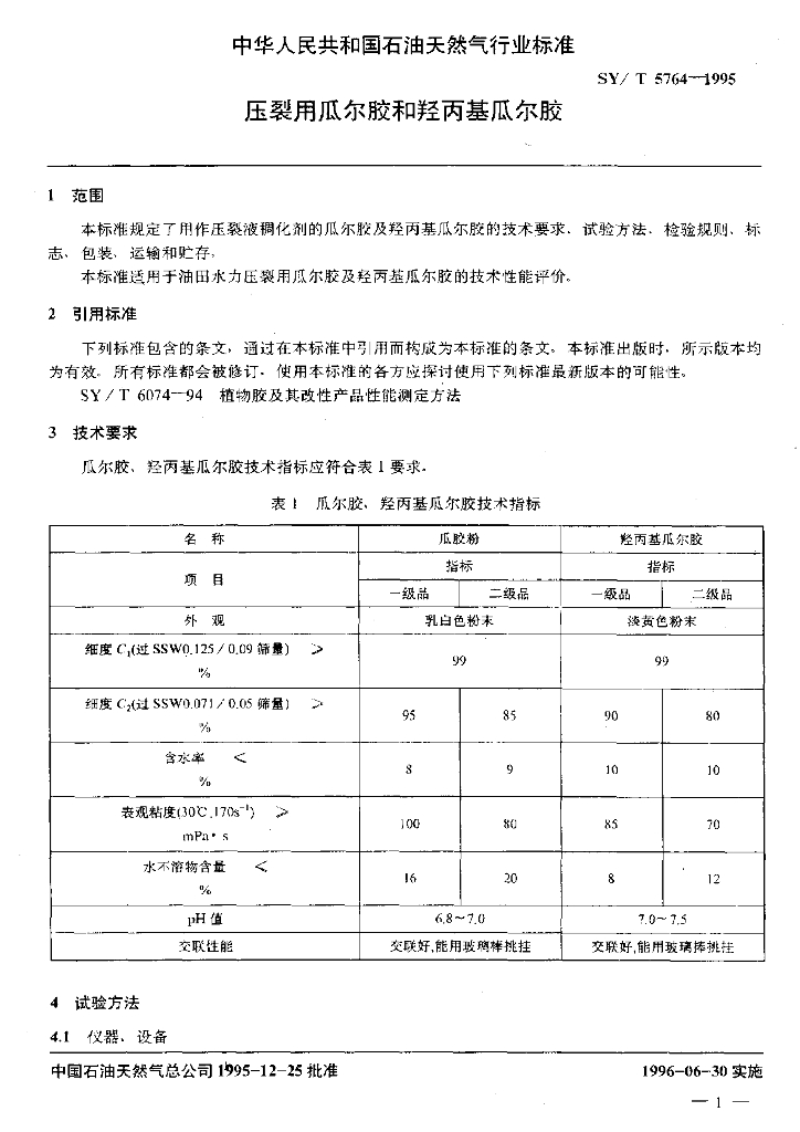 SY/T 5764-1995 压裂用瓜尔胶和羟丙基瓜尔胶