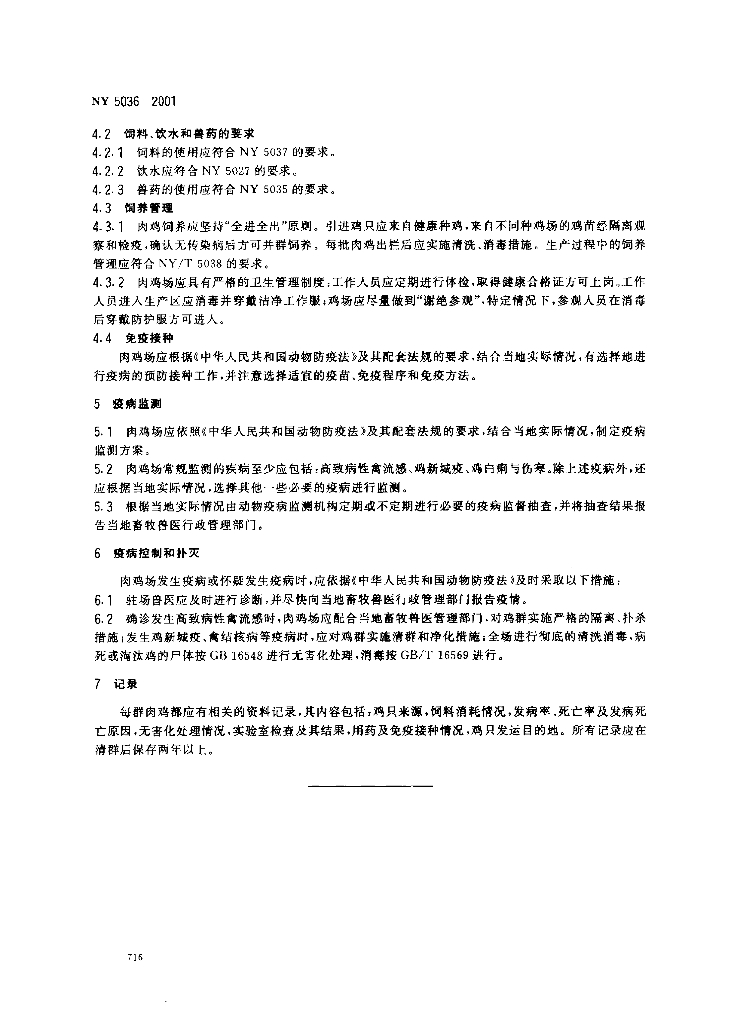 NY 5036-2001 无公害食品 肉鸡饲养兽医防疫准则