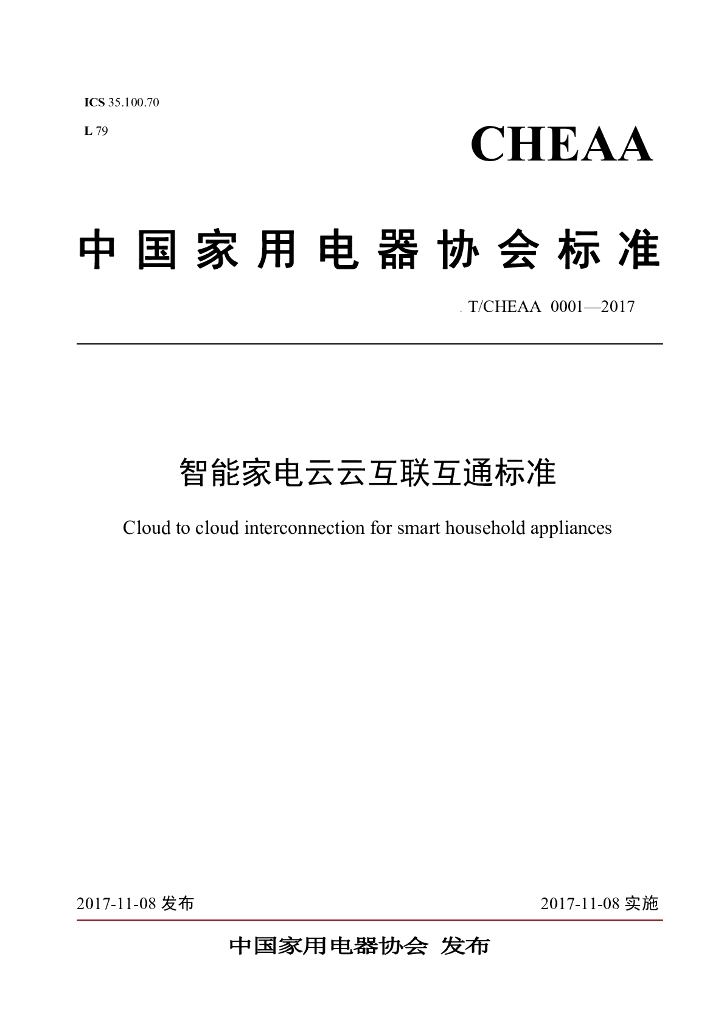 中国家用电器协会、海尔优家智能科技(北京)有限公司、美的智慧家居科技有限公司、博西家用电器投资(中国)有限公司、合肥美菱股份有限公司、青岛海信智慧家居系统股份有限公司、TCL家电集团 、深圳创维智能系统技术研究院、广州云湾信息技术有限公司