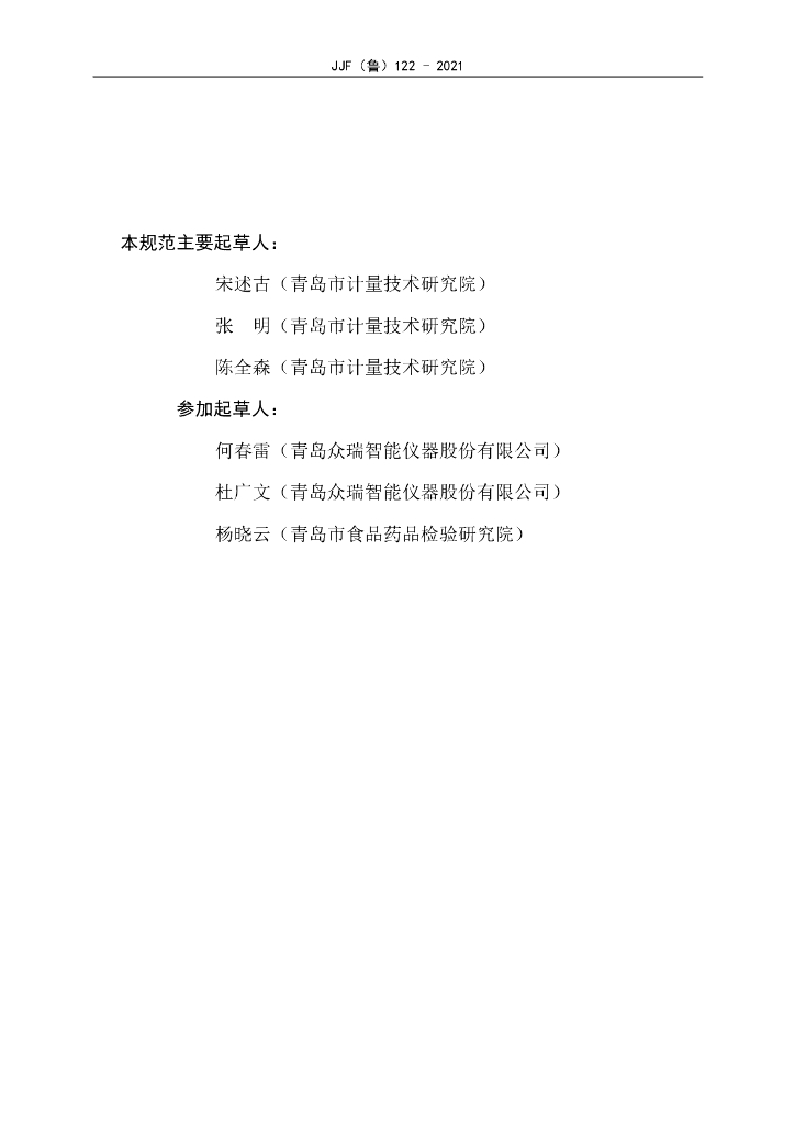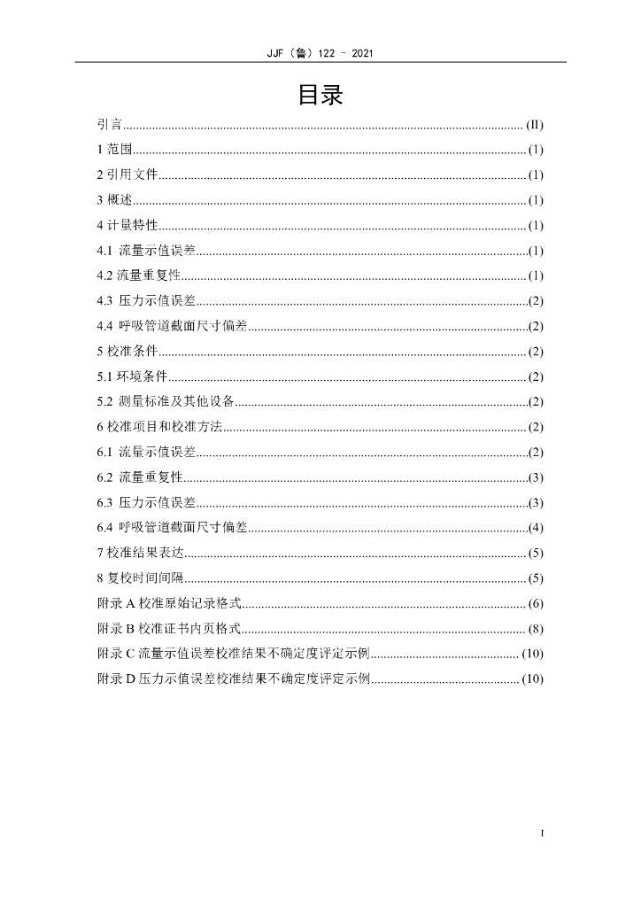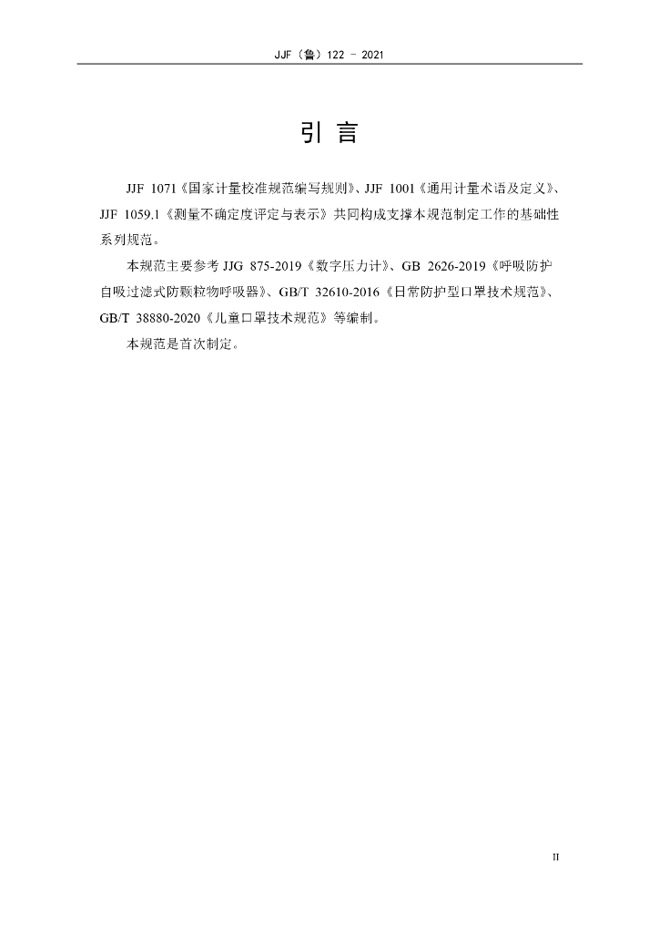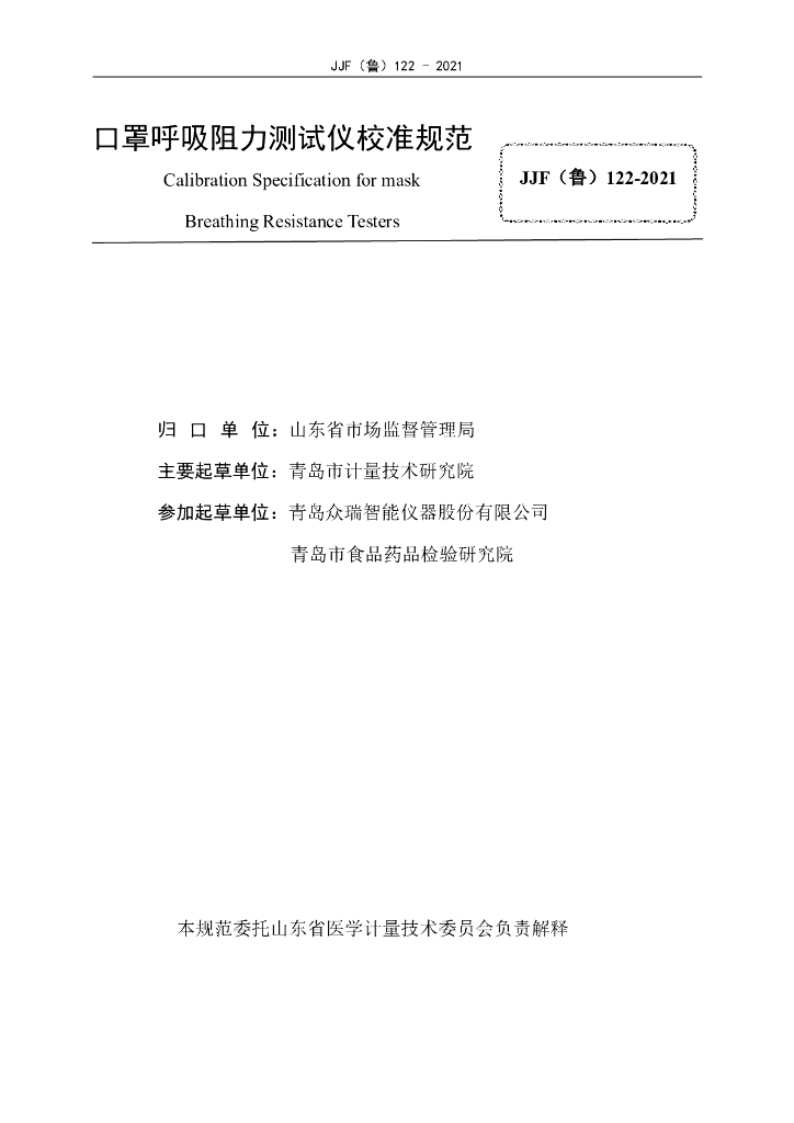 JJF(鲁)122-2021 口罩呼吸阻力测试仪校准规范