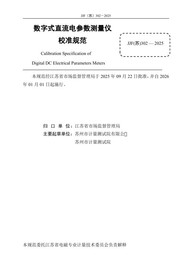 JJF(苏)302-2025 数字式直流电参数测量仪校准规范