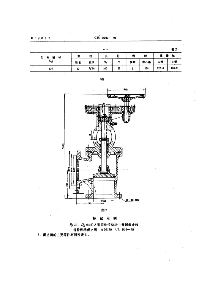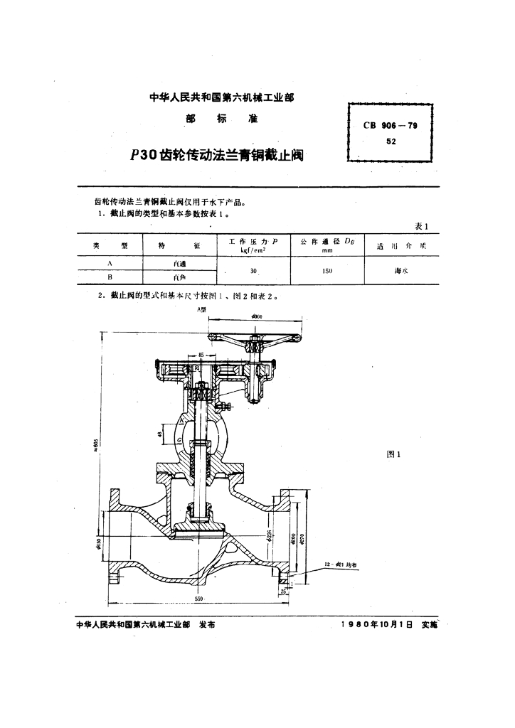 CB 906-1979 P30齿轮传动法兰青铜截止阀