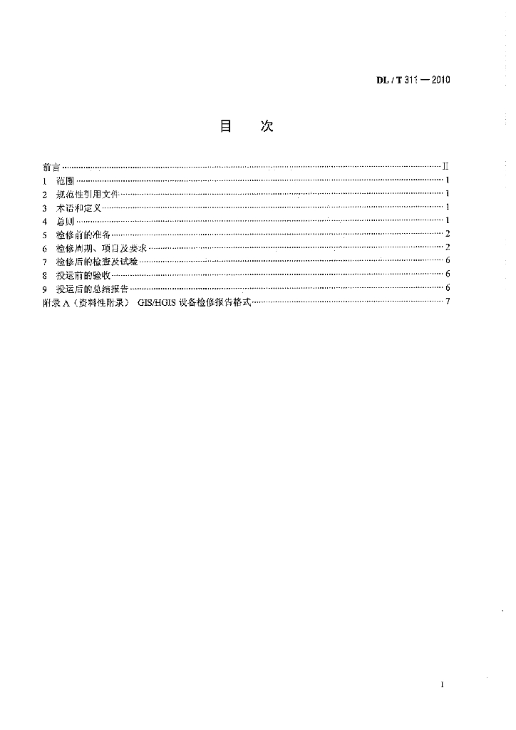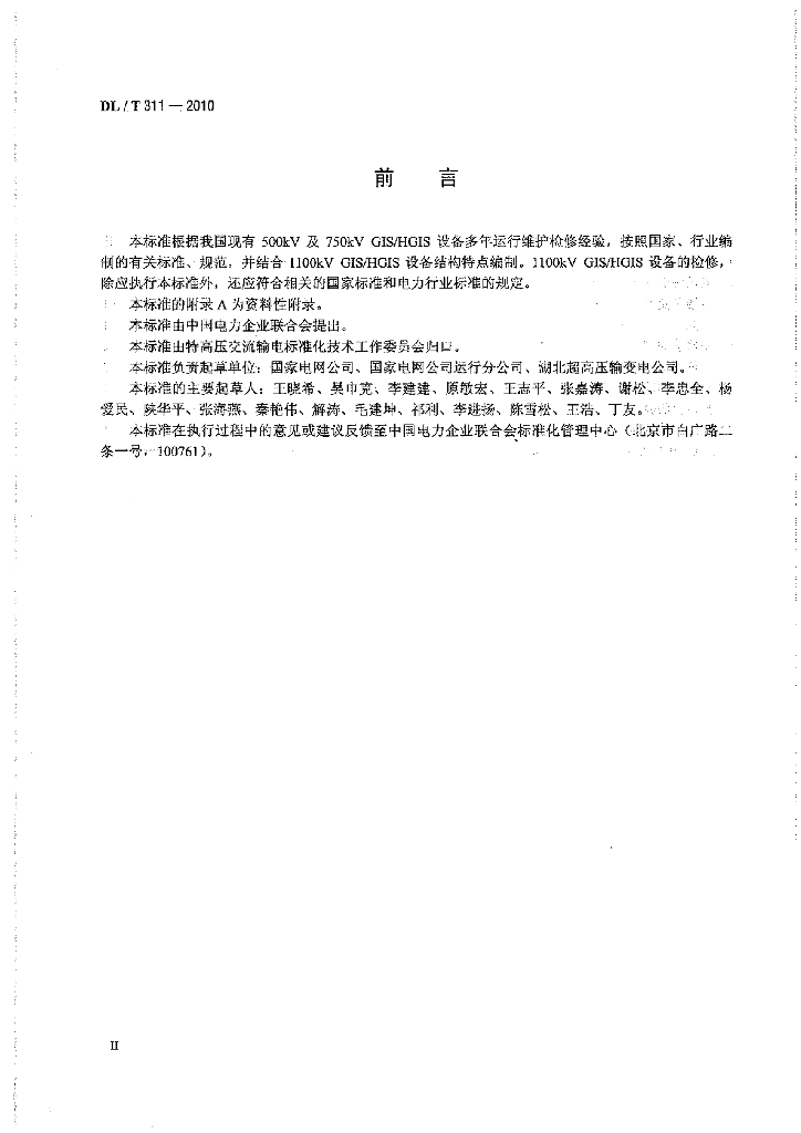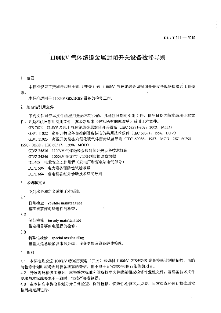 DL/T 311-2010 1100kV 气体绝缘金属封闭开关设备检修导则