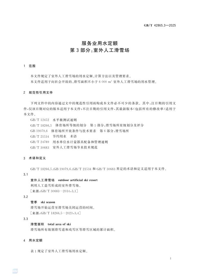 GB/T 42865.3-2025 服务业用水定额 第3部分:室外人工滑雪场