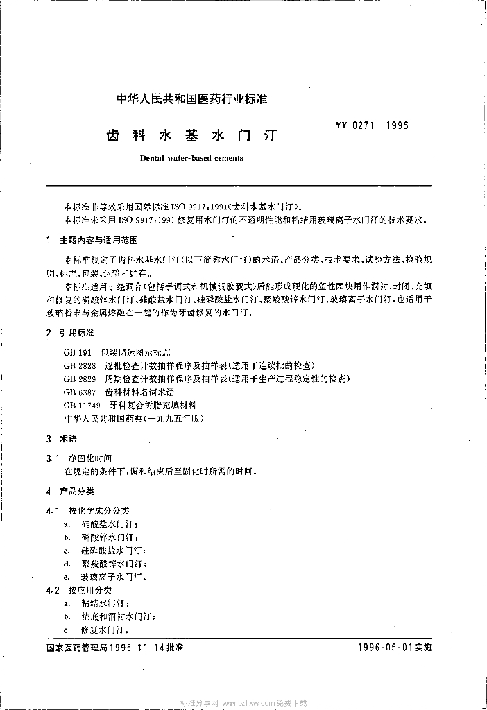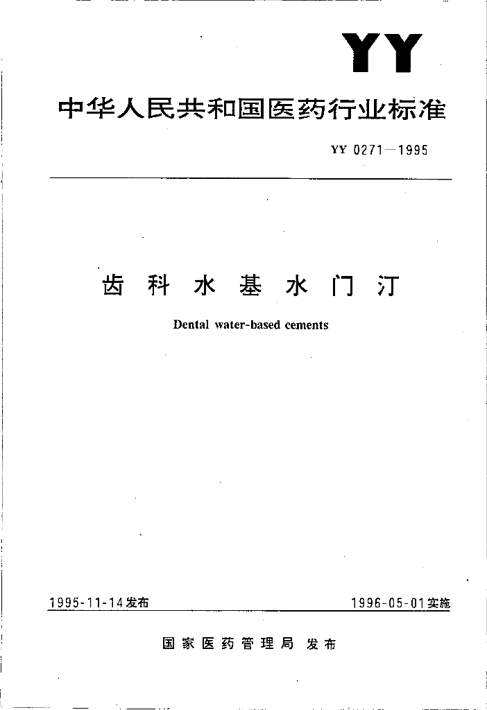 YY 0271-1995 齿科水基水门汀