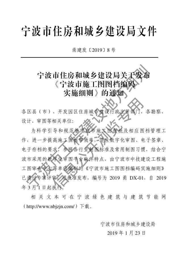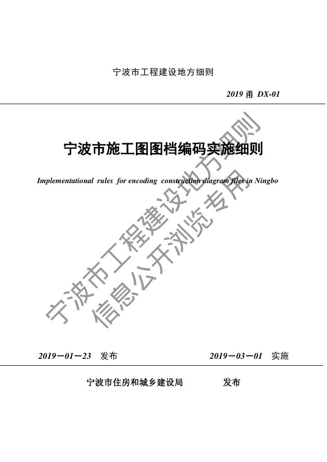2019甬DX-01 宁波市施工图图档编码实施细则