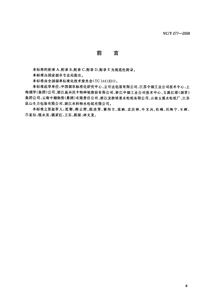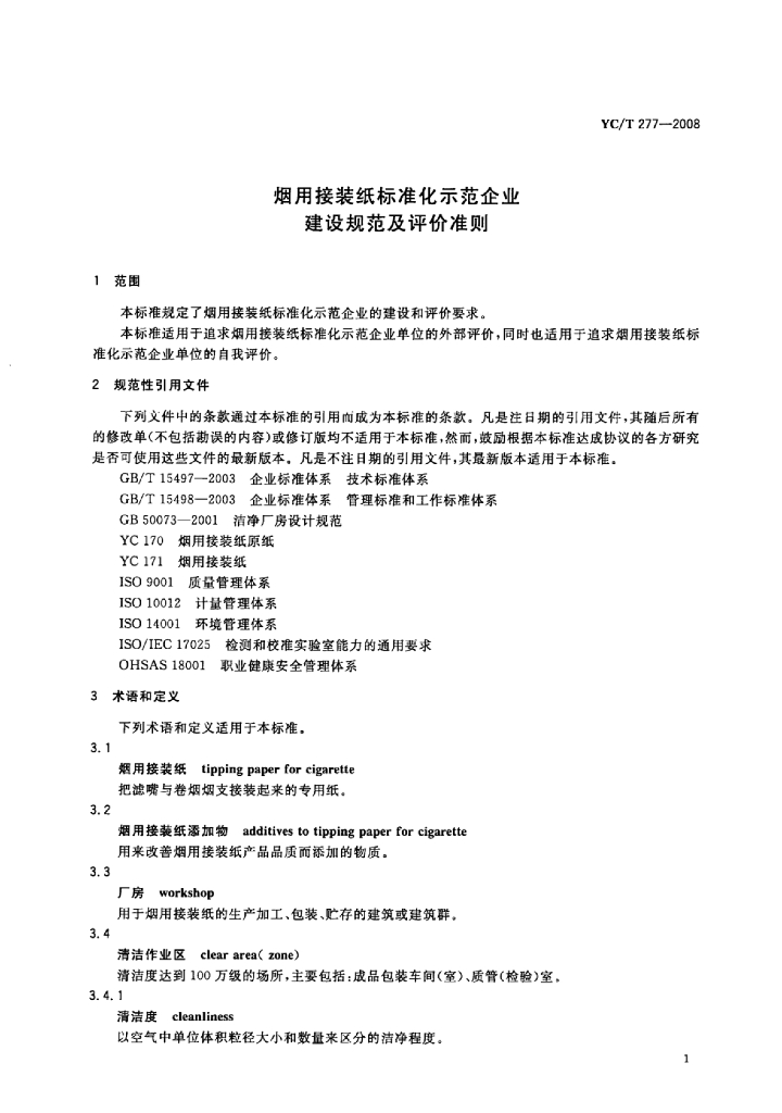 YC/T 277-2008 烟用接装纸标准化示范企业建设规范及评价准则