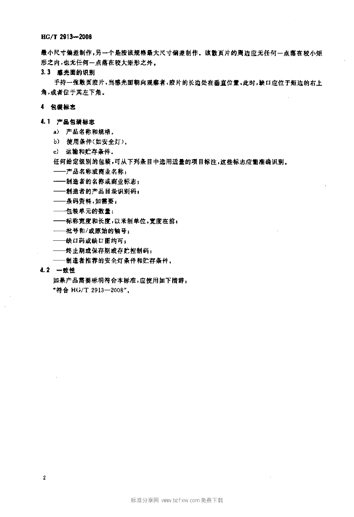 HG/T 2913-2008 艺术摄影散页胶片尺寸