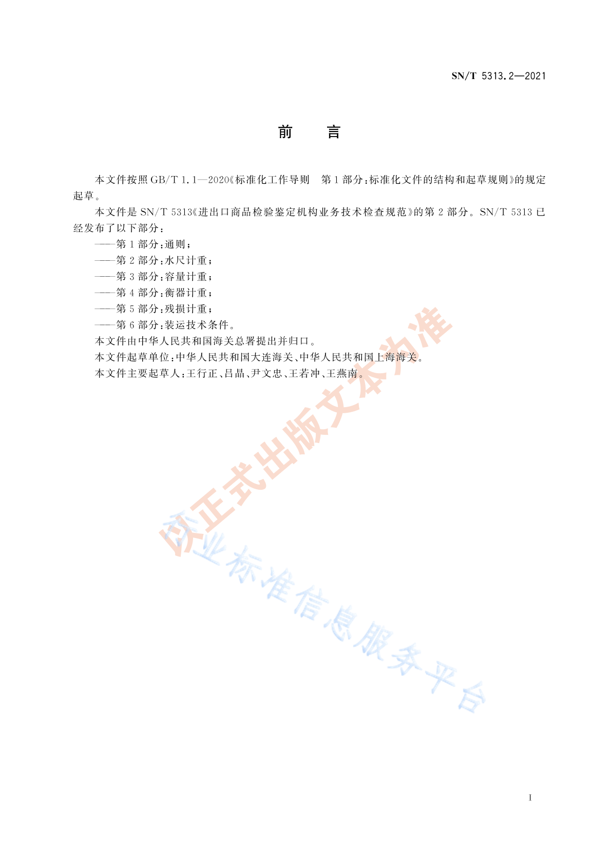 SN/T 5313.2-2021 进出口商品检验鉴定机构业务技术检查规范 第2部分:水尺计重