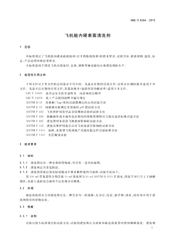MH/T 6064-2010 飞机舱内硬表面清洗剂