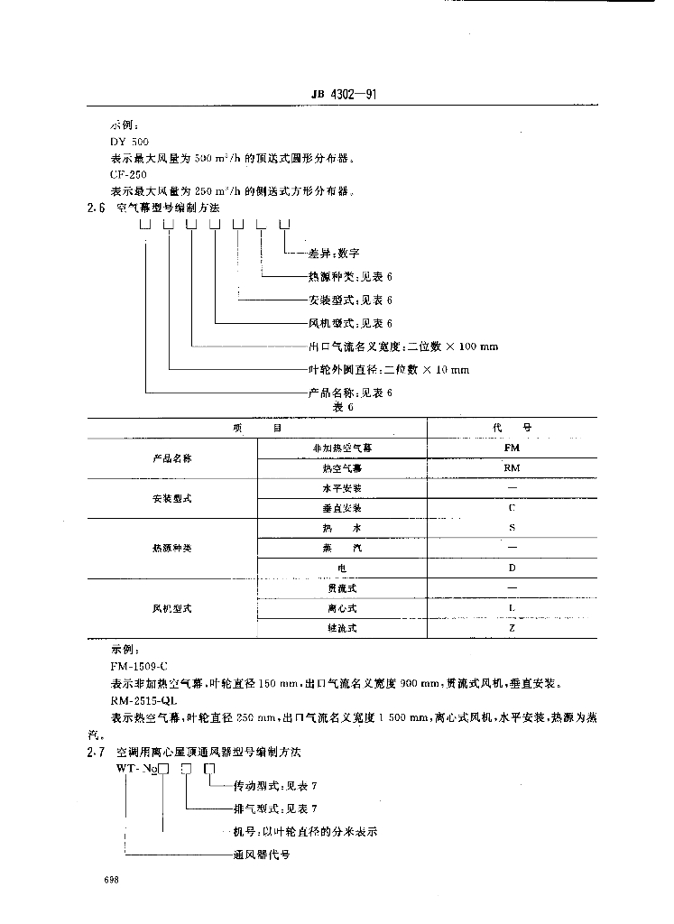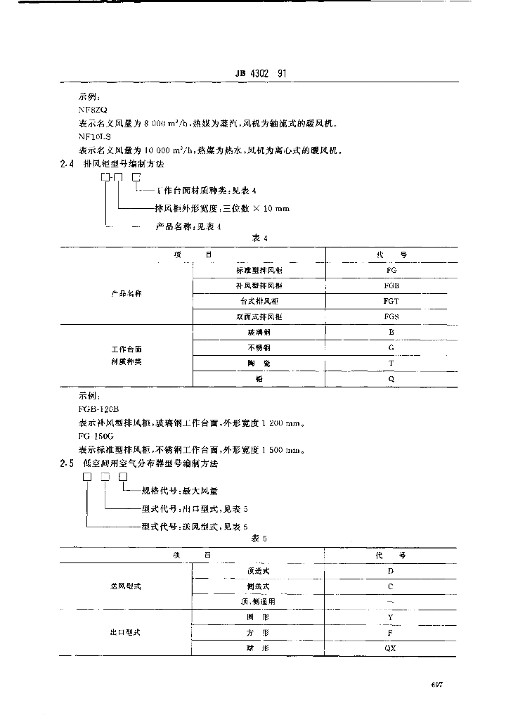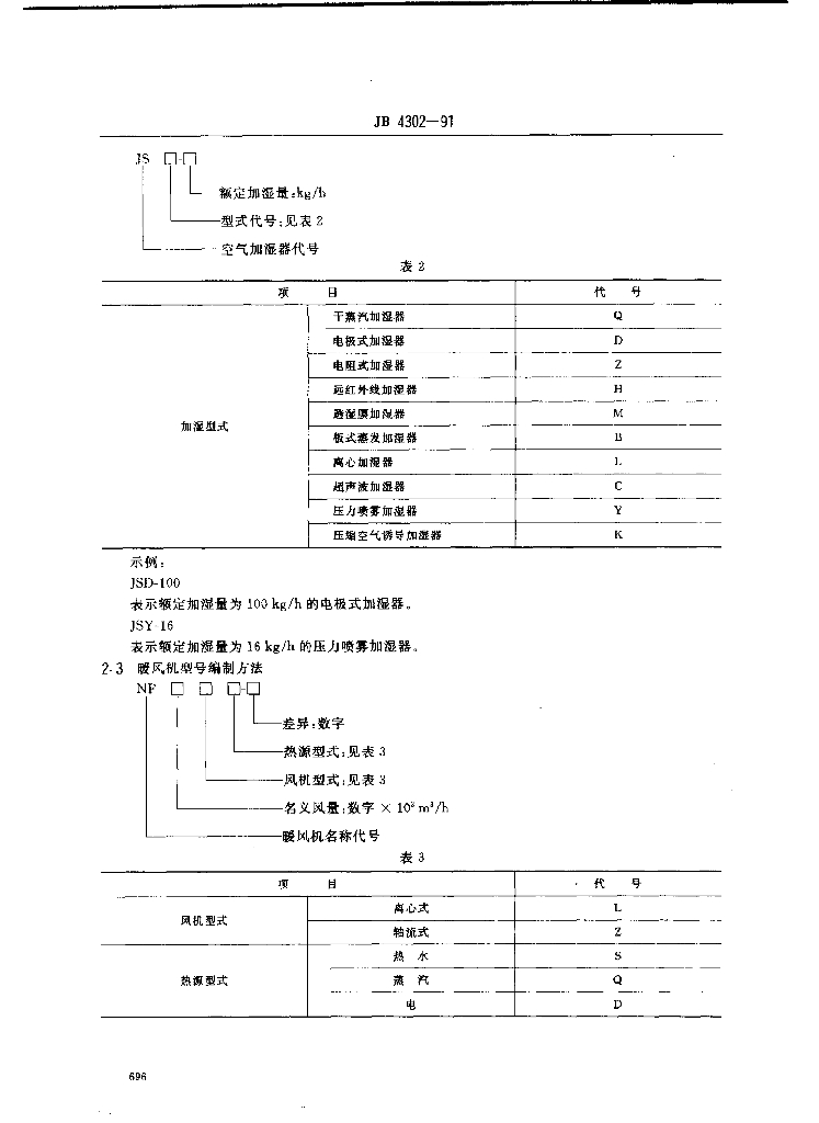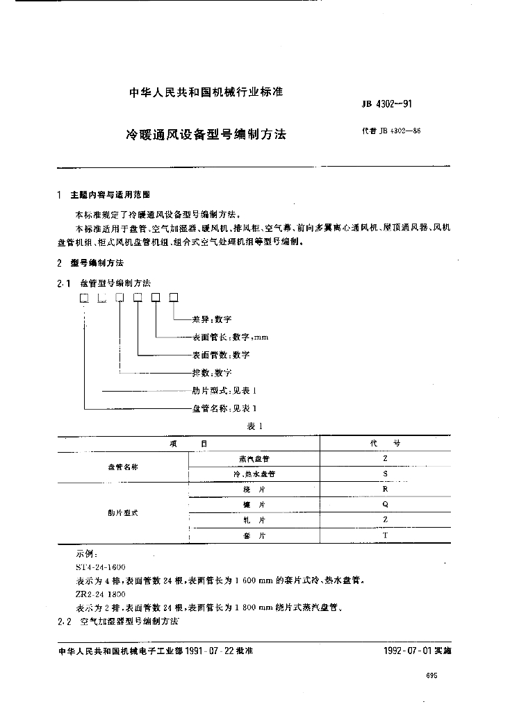 JB/T 4302-1991 冷暖通风设备 型号编制方法