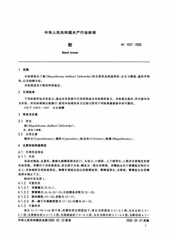 SC/T 1037-2000 鲂