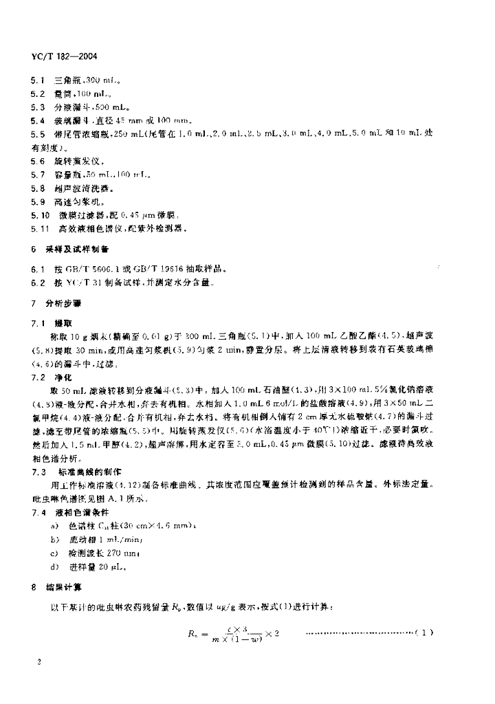 YC/T 182-2004 烟草及烟草制品 吡虫啉农药残留量的测定 高效夜相色谱法