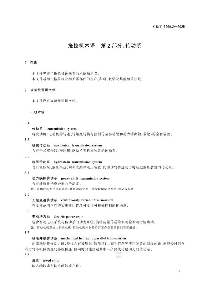 GB/T 6960.2-2025 拖拉机术语 第2部分:传动系