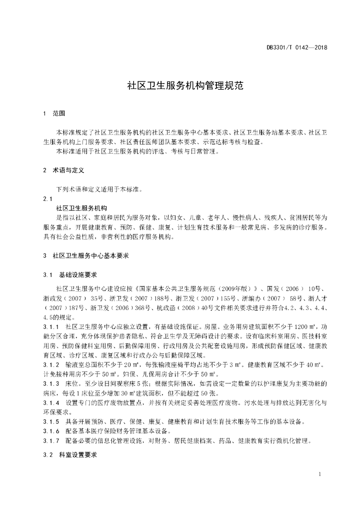 DB3301/T 0142-2018 社区卫生服务机构管理规范