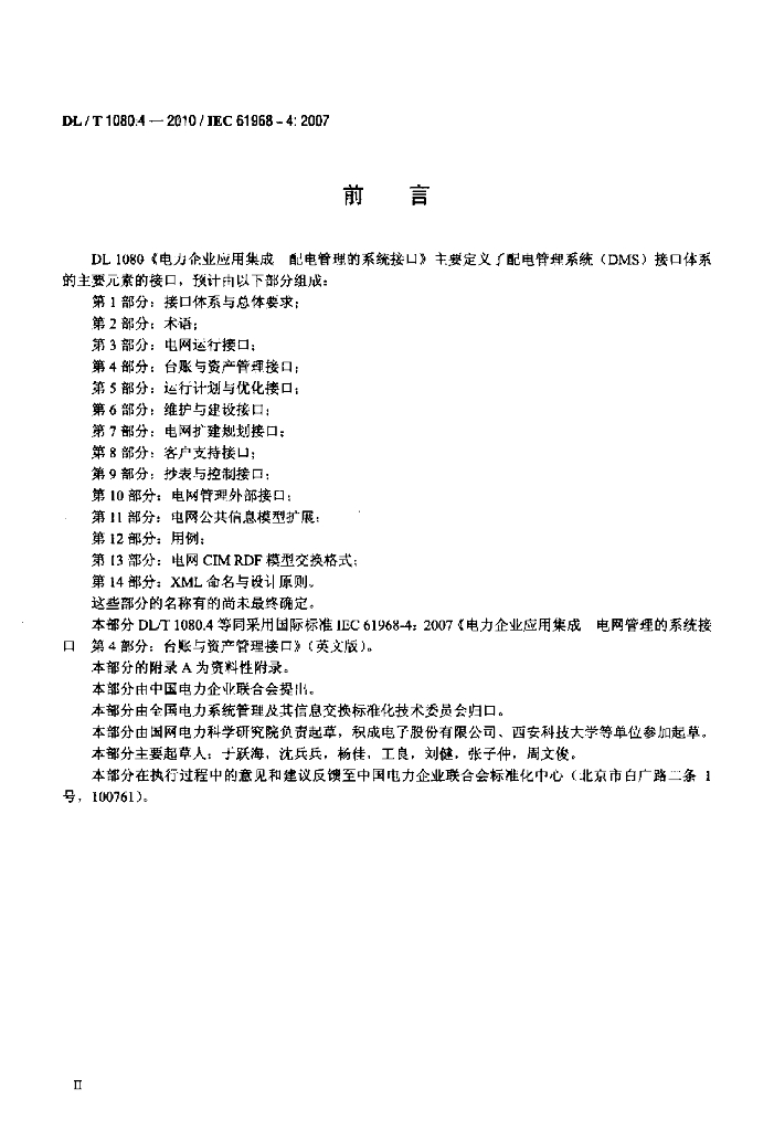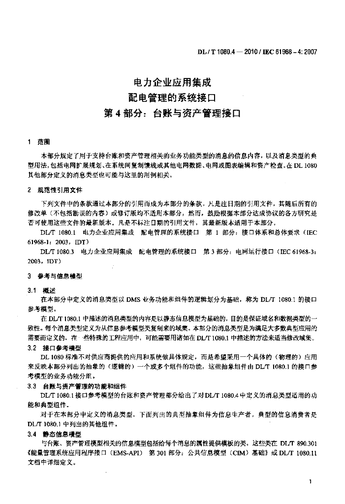 DL/T 1080.4-2010 电力企业应用集成 配电管理的系统接口 第4部分:台账与资产管理接口