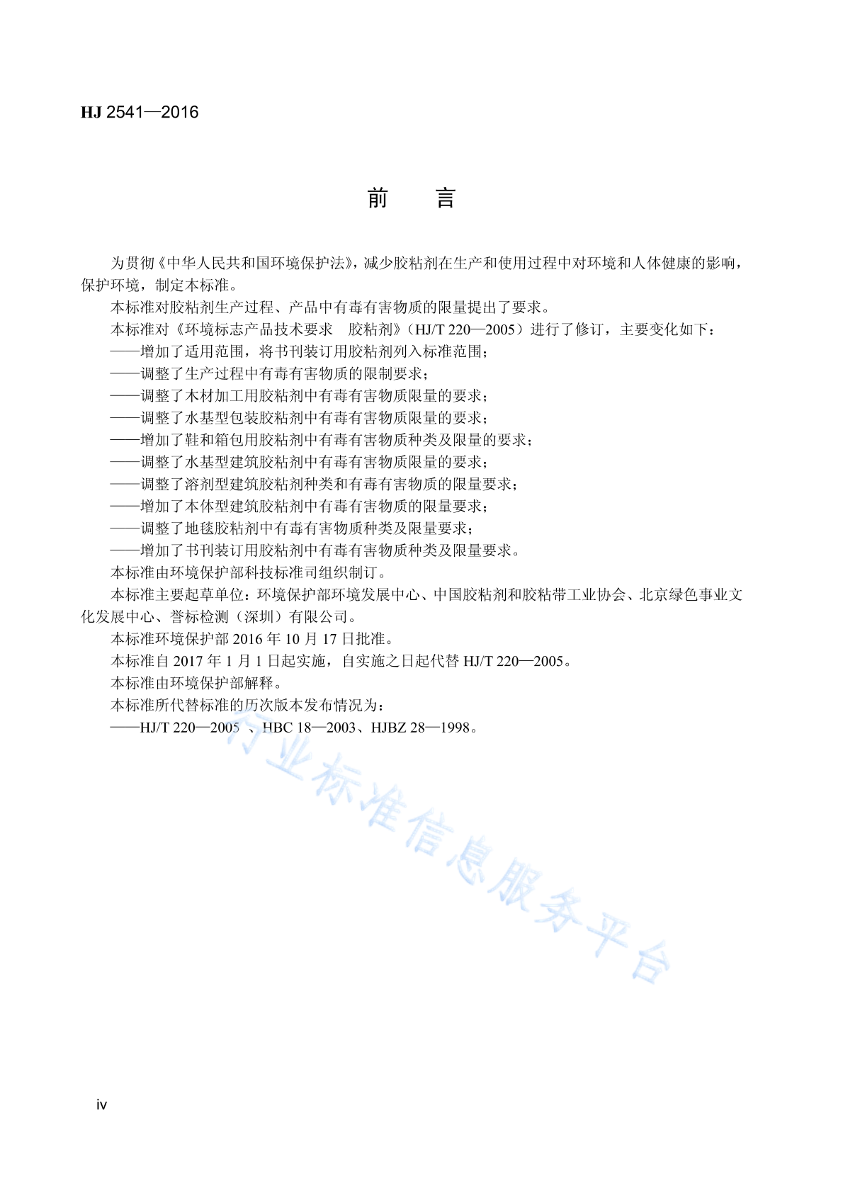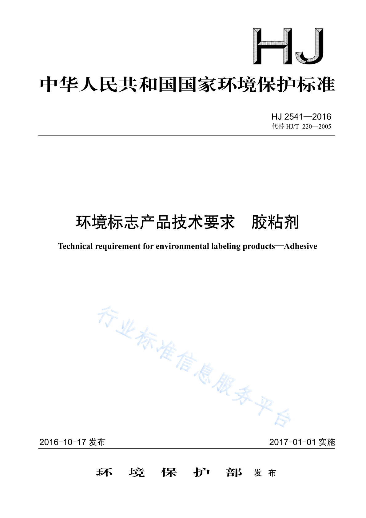 HJ 2541-2016 环境标志产品技术要求 胶粘剂