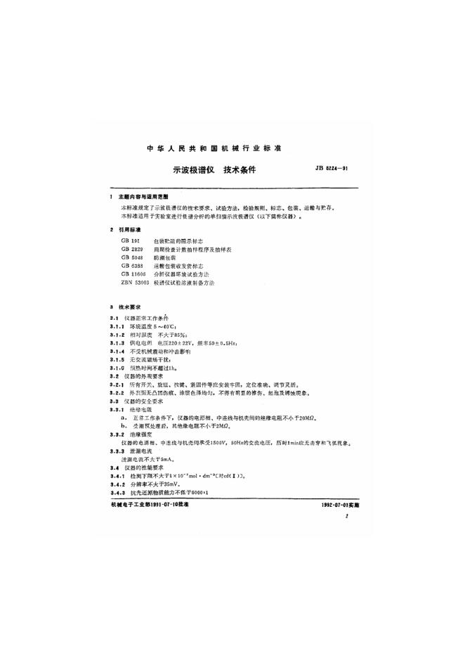 JB 5224-1991 示波极谱仪技术条件