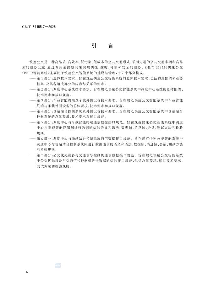 GB/T 31455.7-2025 快速公交(BRT)智能系统 第7部分:公交优先设备与交通信号控制机通信数据接口规范
