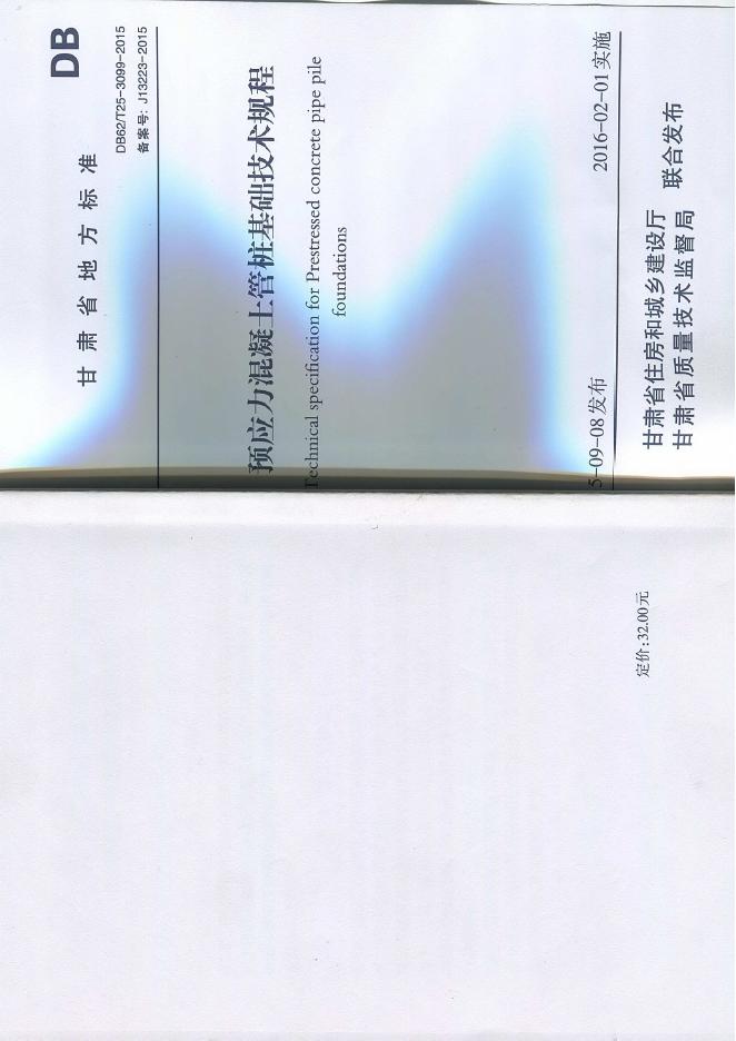 DB62/T 25-3099-2015 预应力混凝土管桩基础技术规程