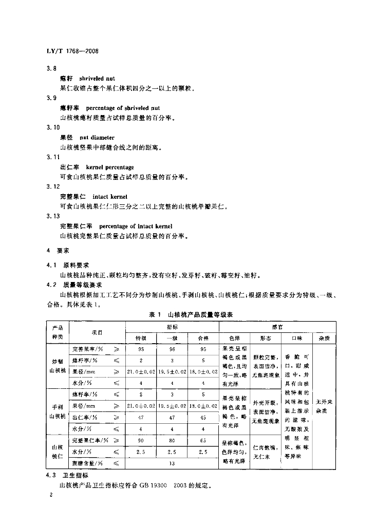 LY/T 1768-2008 山核桃产品质量要求