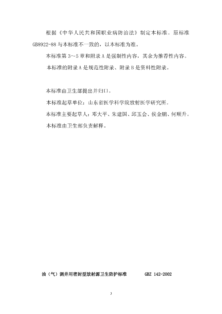 GBZ 142-2002 油(气)田测井用密封型放射源卫生防护标准